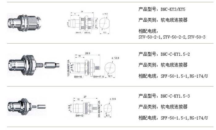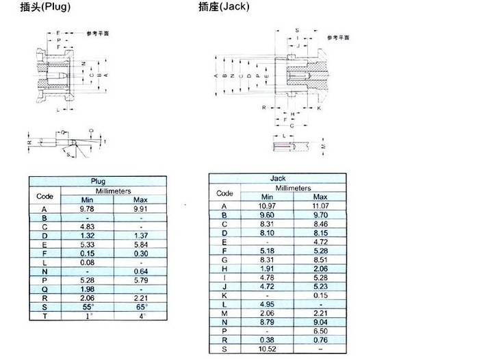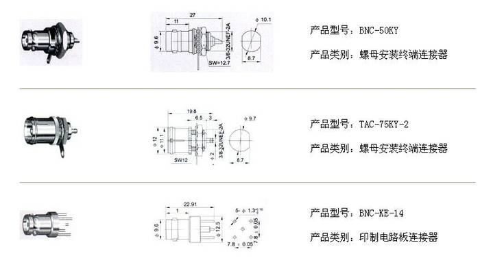 SERIES RF COAXIAL CONNECTORS BNC系列是一种卡口连接射频同轴连接器。它具有连接迅速,接触可靠等特点,广泛应用于无线电设备和电子仪器领域连接射频同轴电缆。 BNC series are one kind of cards of thing the mouth join the radio frequency coaxial connection device. It joins rapidly, keeps in touch with the characteristic such as being reliable, apply to the radio equipment and electron tube instrument field and join the coaxial cable of the radio frequency extensively. 界面尺寸 INTERFACE MATING DIMENSIONS